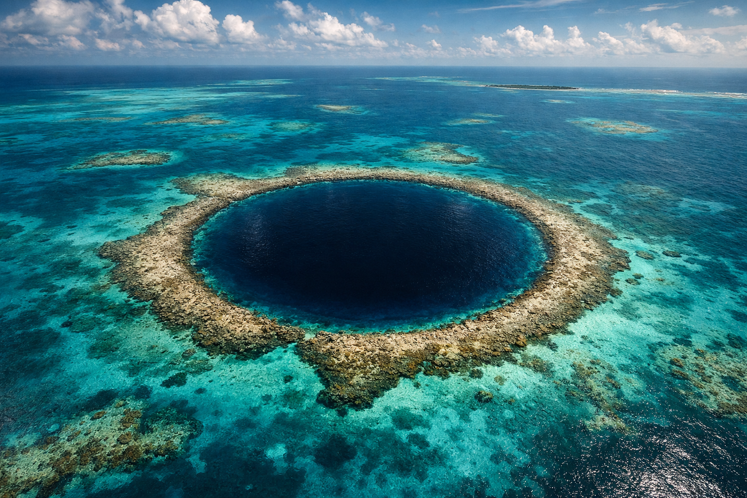 পৃথিবীর মানচিত্রে এমন কিছু জায়গা আছে যা দেখলে মনে হয় সেগুলো হয়তো এই গ্রহের নয়। মধ্য আমেরিকার বেলিজ উপকূল থেকে প্রায় ১০০ কিলোমিটার দূরে অবস্থিত The Great Blue Hole ঠিক তেমনই এক শিহরণ জাগানো বিস্ময়।